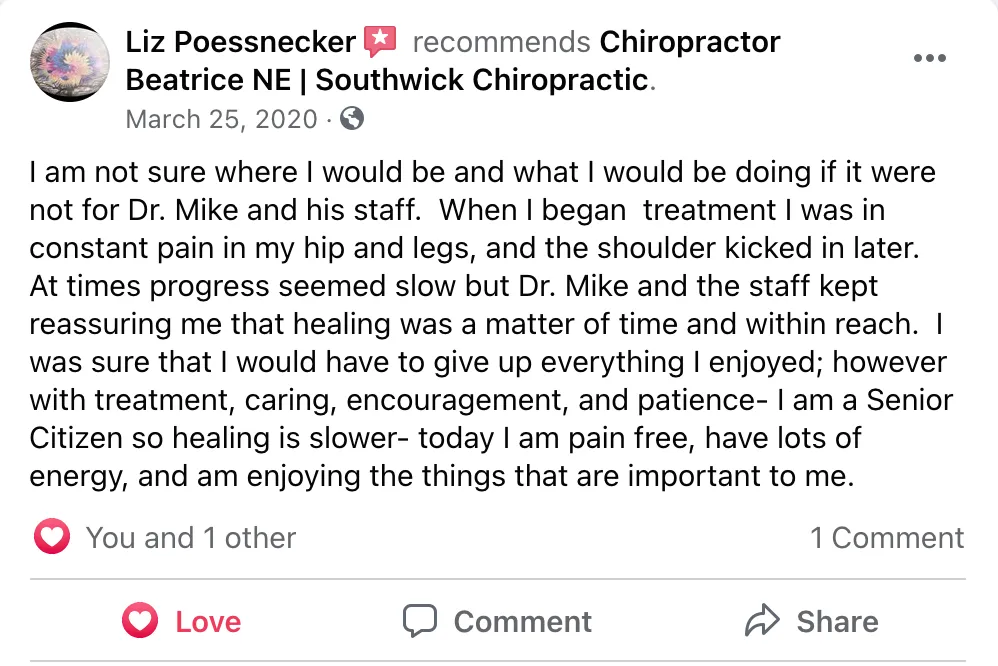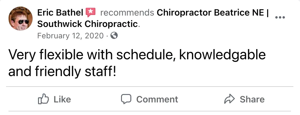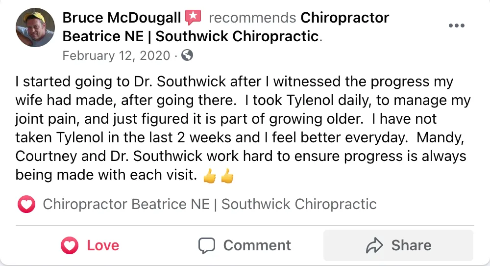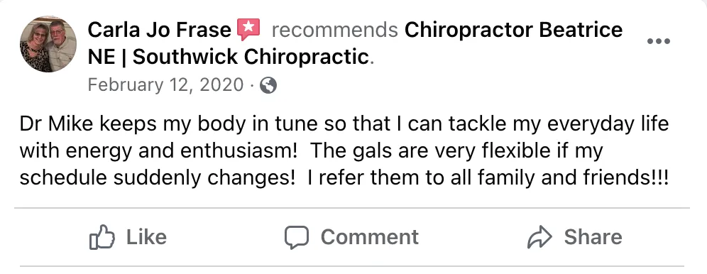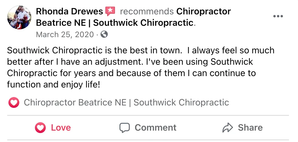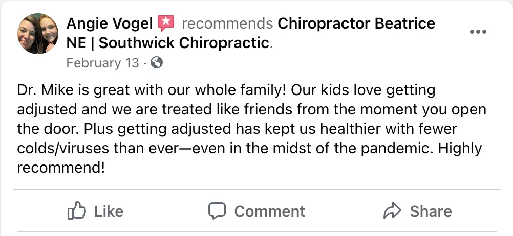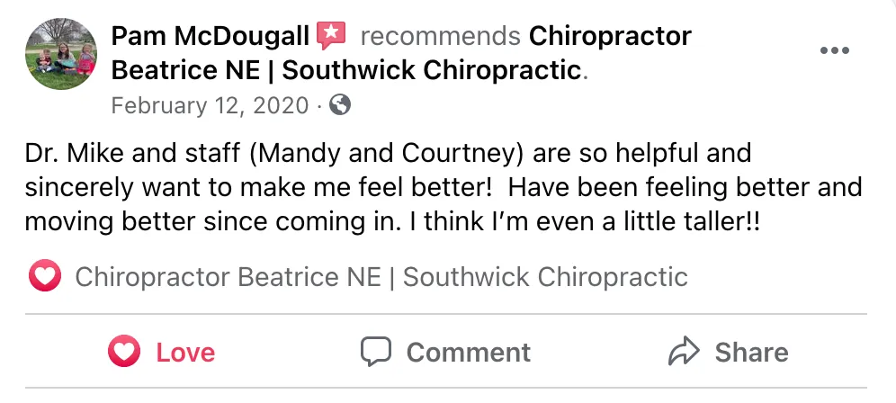 Our office has helped countless people in the Southeast Nebraska area address assorted health symptoms, aches and pains. The number one priority at our office is ensuring that each and every patient feels like family from the second they walk in. Our staff will work relentlessly alongside you to get to the bottom of any symptoms that you may be experiencing so that we can determine a course of action moving forward to reduce or get rid of the symptoms entirely.
